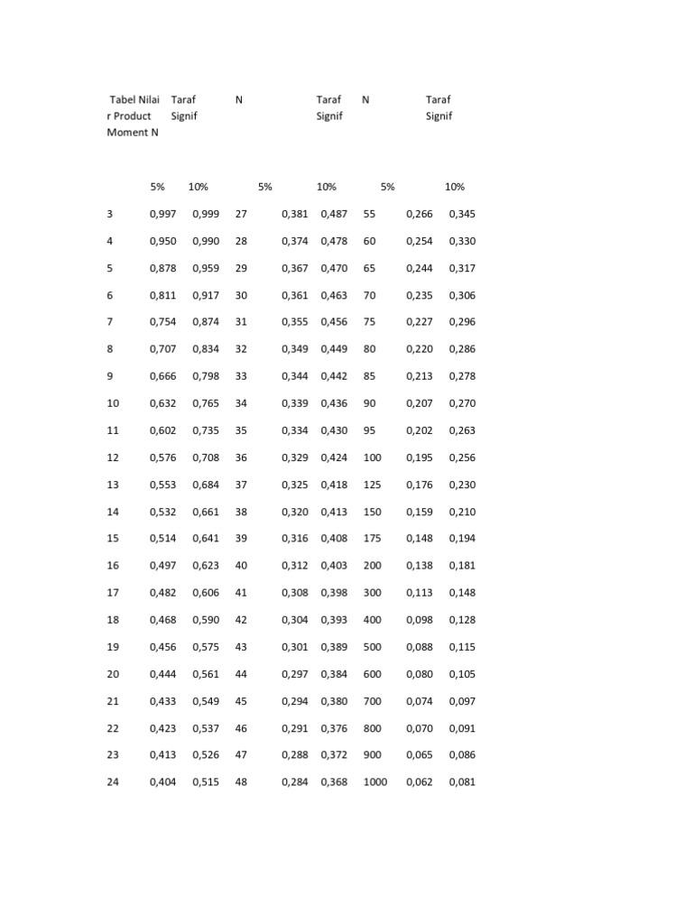 Distribusi nilai r tabel signifikansi 5% dan 1%, distribusi nilai t tabel, distribution f tabel nilai f0,05 catatan: